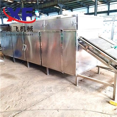 烘干機物料由加料器均勻的鋪在網(wǎng)帶上,有傳動裝置拖動在干燥機內(nèi)移動。傳動部分是不銹鋼網(wǎng)帶或不銹鋼沖孔鏈板,他的優(yōu)勢就是散熱率非常高且熱氣流幾乎是垂直穿透物料,所以空氣介質(zhì)上、中、下層分別與物料接觸,上層為高溫氣流與含水率高的物料接觸,使其能實現(xiàn)快速脫水的目的。中層為室溫氣流,使物料實現(xiàn)后期干燥。下層為室溫氣流,穿透物料層即降低了料溫,又保護(hù)了物料原本的色澤,從而滿足了許多食品、工業(yè)和農(nóng)場物料干燥工藝的特性要求。